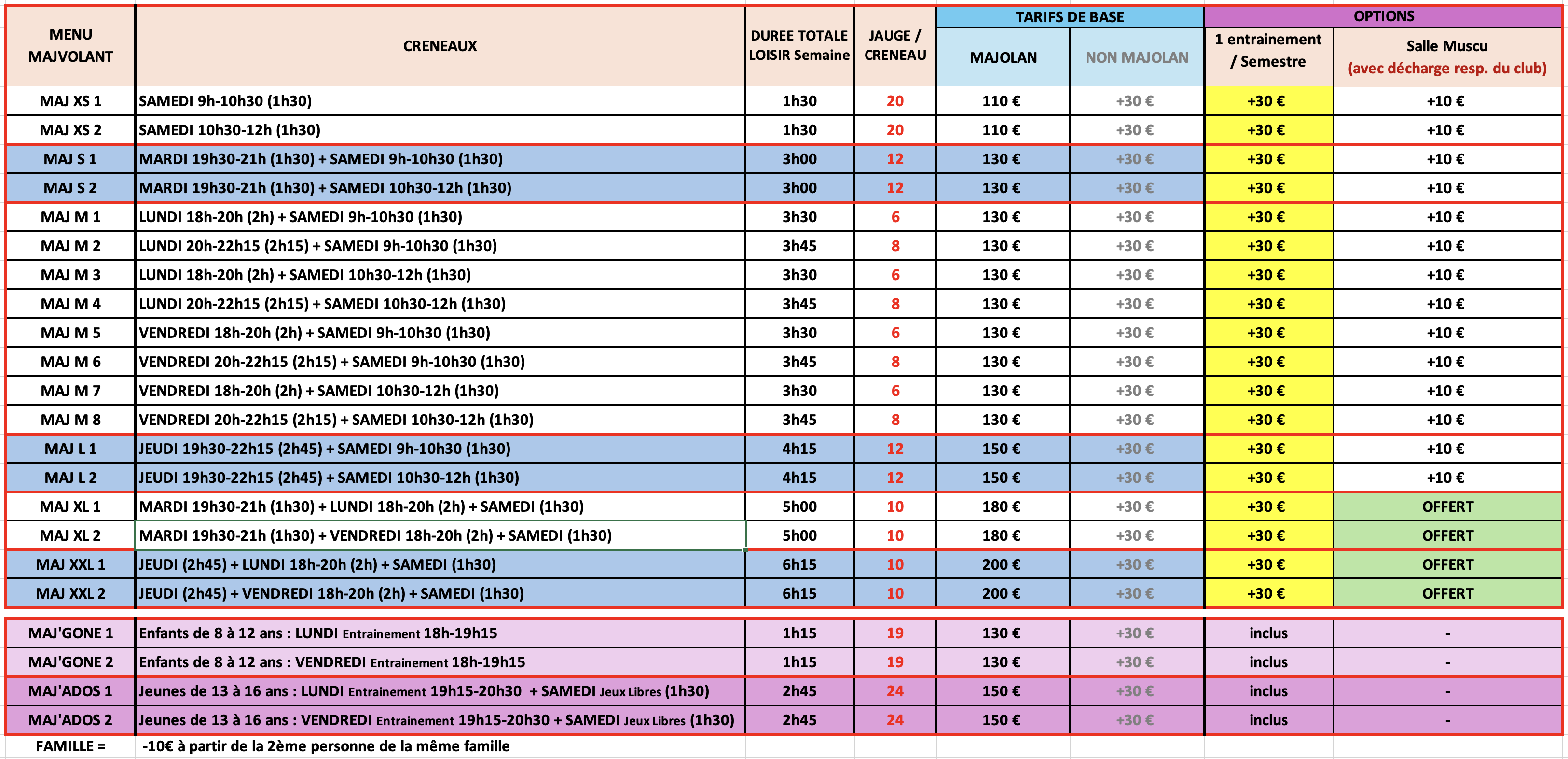 Pour les non Majolan, merci de rajouter systématiquement l' 'OPTION NON MAJOLANT" dans l'onglet des choix de créneaux